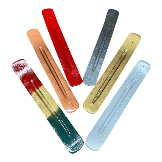 Wooden Flat Incense Burner Red Green & Gold